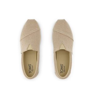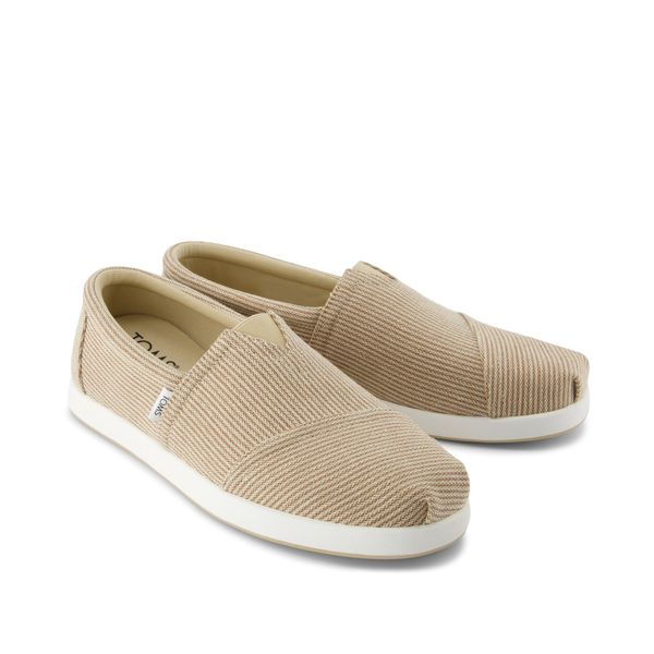 Almond Subtle Stripe, 10021911TOMS run true to size and are available in medium width only. We recommend ordering the size you normally wear. If you are typically in between sizes, we recommend going with the smaller one since TOMS will stretch slightly as you break them in.