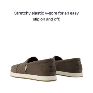 Impactful Alpargata slip-ons with signature TOMS style, now available in waxed recycled cotton uppers. Easygoing and casual in canteen green, these go-to shoes pair well with jeans, tees and everything in between. Recycled cotton upper-made with at least 50% recycled cotton which helps keep waste out of landfills and requires less water and energy than conventional cotton.