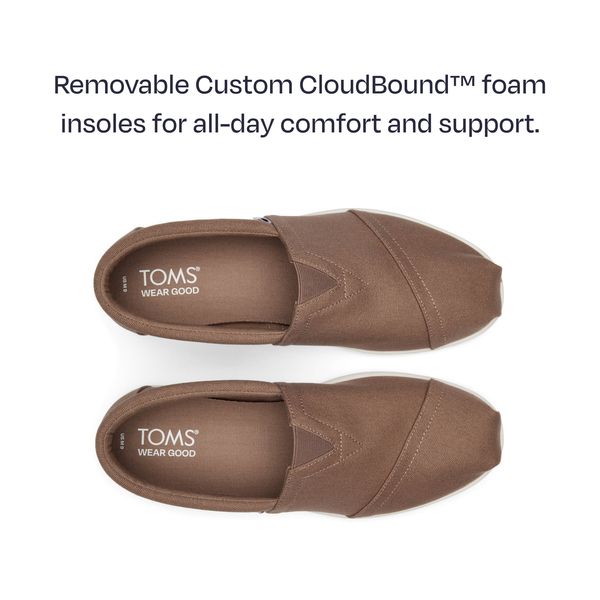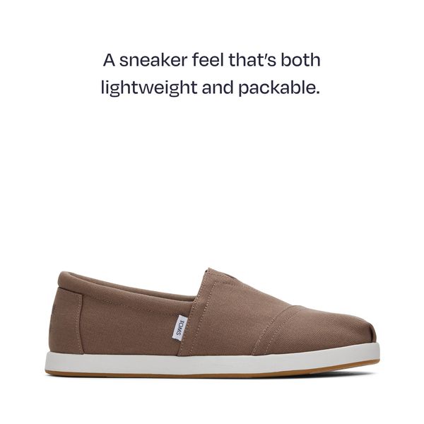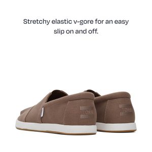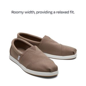 Taupe Grey Recycled Cotton Canvas, 10020276TOMS run true to size and are available in medium width only. We recommend ordering the size you normally wear. If you are typically in between sizes, we recommend going with the smaller one since TOMS will stretch slightly as you break them in.