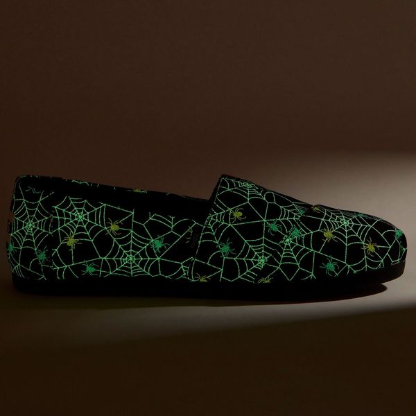 Oh-so-spooky Alpargata slip-ons. Perfect for Halloween, these espadrilles feature a classic TOMS silhouette and a fun spider print that glows in the dark. Fitted with elastic gore and cushy CloudBoundâ„¢ insoles for easy entry and long-lasting comfort.Spider-print textile upper. Shop matching styles for the family.