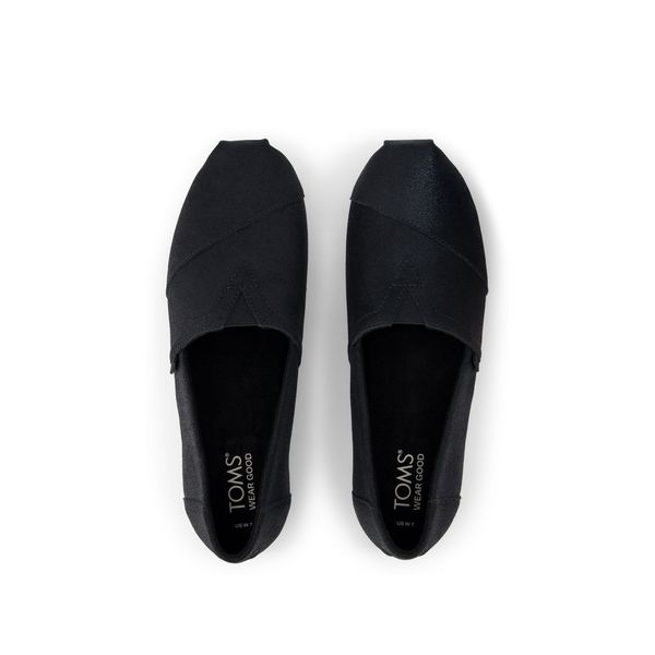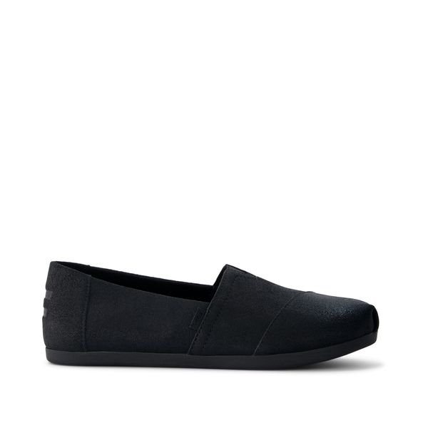 Slide into elegant, easygoing style. These Alpargata slip-ons add instant shine with a black metallic upper made of soft suede. CloudBoundâ„¢ insoles ensure lasting comfort and support. Pair with jeans or a dress. Impact looks good on you.Metallic suede uppers. TOMS leather products support responsible manufacturing via the Leather Working Group.