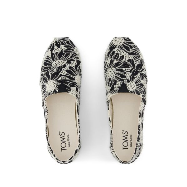 Black Floral Eyelet, 10021888TOMS run true to size and are available in medium width only. We recommend ordering the size you normally wear. If you are typically in between sizes, we recommend going with the smaller one since TOMS will stretch slightly as you break them in.