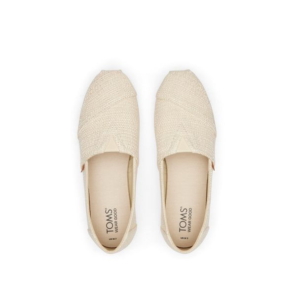 Natural Undyed Metallic Linen Stripe, 10020656TOMS run true to size and are available in medium width only. We recommend ordering the size you normally wear. If you are typically in between sizes, we recommend going with the smaller one since TOMS will stretch slightly as you break them in.