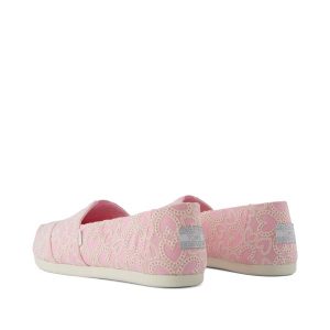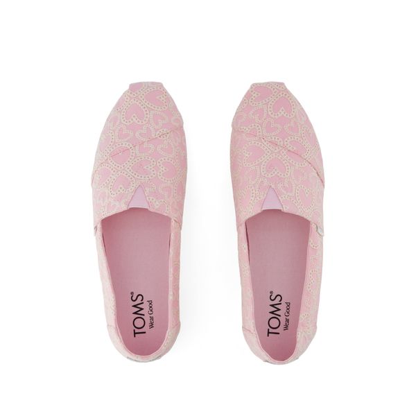 Pink Hearts Eyelet, 10022209TOMS run true to size and are available in medium width only. We recommend ordering the size you normally wear. If you are typically in between sizes, we recommend going with the smaller one since TOMS will stretch slightly as you break them in.