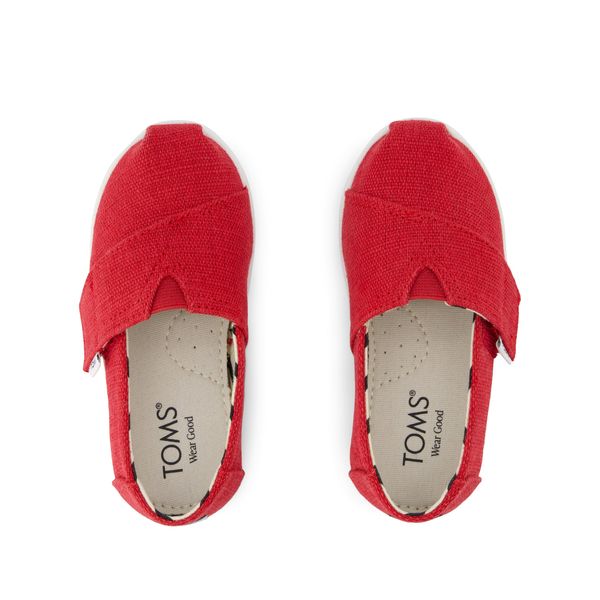 Red Heritage Canvas, 10022099TOMS run true to size and are available in medium width only. We recommend ordering the size you normally wear. If you are typically in between sizes, we recommend going with the smaller one since TOMS will stretch slightly as you break them in.
