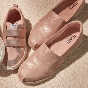 Pale Rose Metallic Suede, 10021918TOMS run true to size and are available in medium width only. We recommend ordering the size you normally wear. If you are typically in between sizes, we recommend going with the smaller one since TOMS will stretch slightly as you break them in.