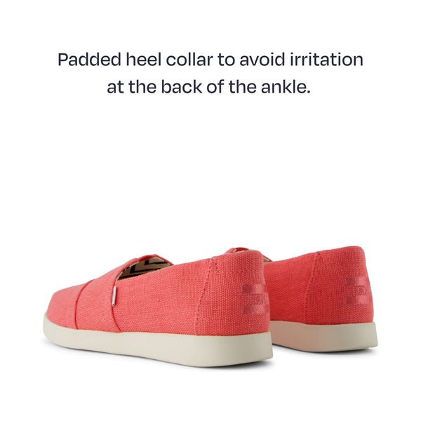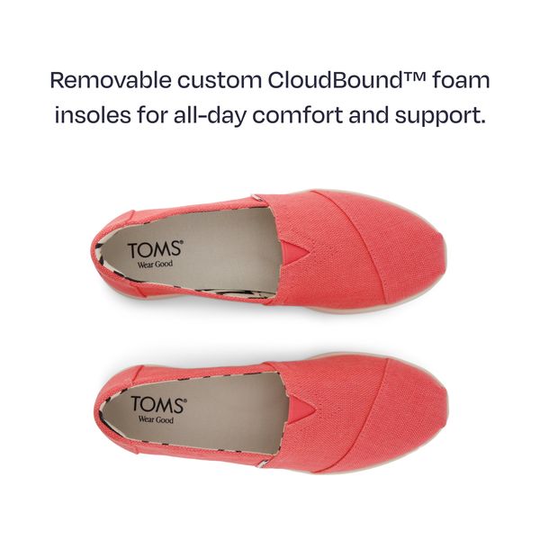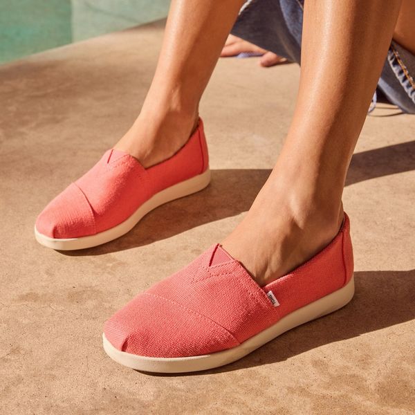 Sunset Coral Heritage Canvas, 10022207TOMS run true to size and are available in medium width only. We recommend ordering the size you normally wear. If you are typically in between sizes, we recommend going with the smaller one since TOMS will stretch slightly as you break them in.