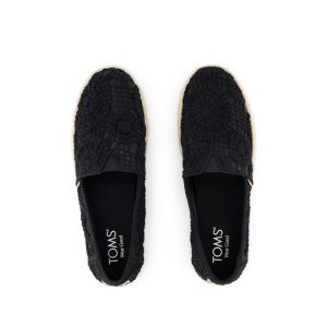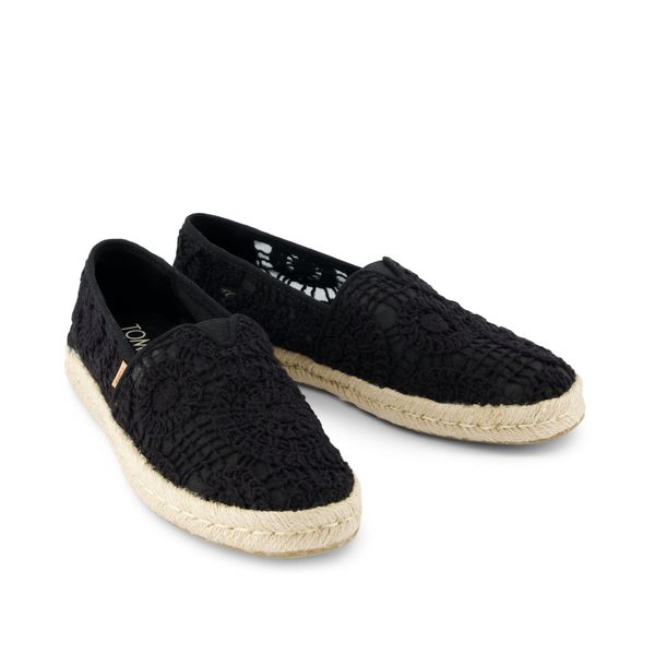 Black Crochet Lace, 10021938TOMS run true to size and are available in medium width only. We recommend ordering the size you normally wear. If you are typically in between sizes, we recommend going with the smaller one since TOMS will stretch slightly as you break them in.
