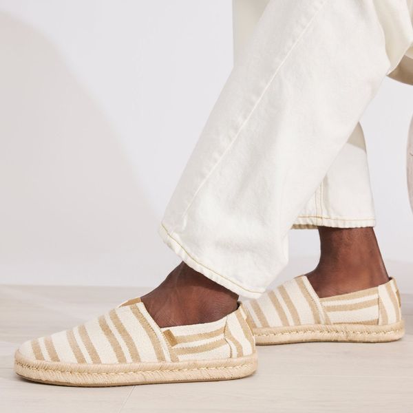 Toffee Beach Stripe, 10021900TOMS run true to size and are available in medium width only. We recommend ordering the size you normally wear. If you are typically in between sizes, we recommend going with the smaller one since TOMS will stretch slightly as you break them in.