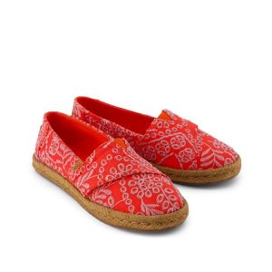 Flame Botanical Eyelet, 10022095TOMS run true to size and are available in medium width only. We recommend ordering the size you normally wear. If you are typically in between sizes, we recommend going with the smaller one since TOMS will stretch slightly as you break them in.