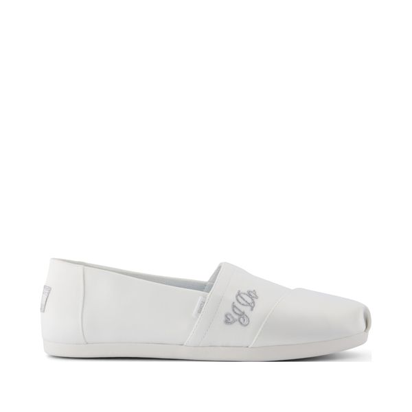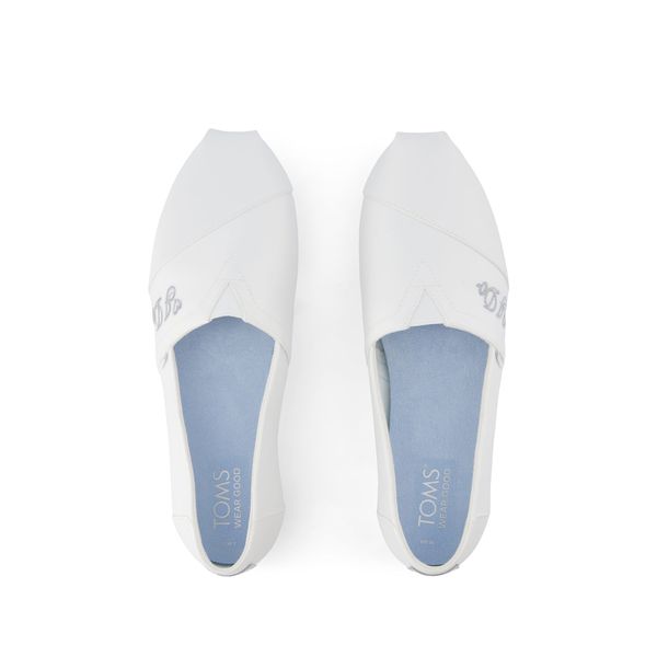 White Satin with I do Embroidery, 10021813TOMS run true to size and are available in medium width only. We recommend ordering the size you normally wear. If you are typically in between sizes, we recommend going with the smaller one since TOMS will stretch slightly as you break them in.