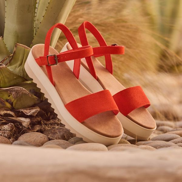 Our Brynn sandal features the added height we know you love, a strappy design for comfortable style and a sawtooth bottom for no-slip grip. Pair with flowy dresses or cropped denim for anything on your warm-weather agenda. Suede upper. TOMS leather products support responsible manufacturing via the Leather Working Group.
