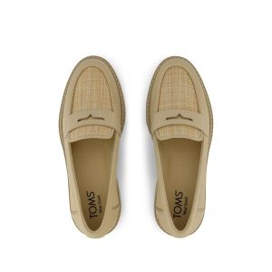 Natural Almond Leather and Rafia, 10022231TOMS run true to size and are available in medium width only. We recommend ordering the size you normally wear. If you are typically in between sizes, we recommend going with the smaller one since TOMS will stretch slightly as you break them in.
