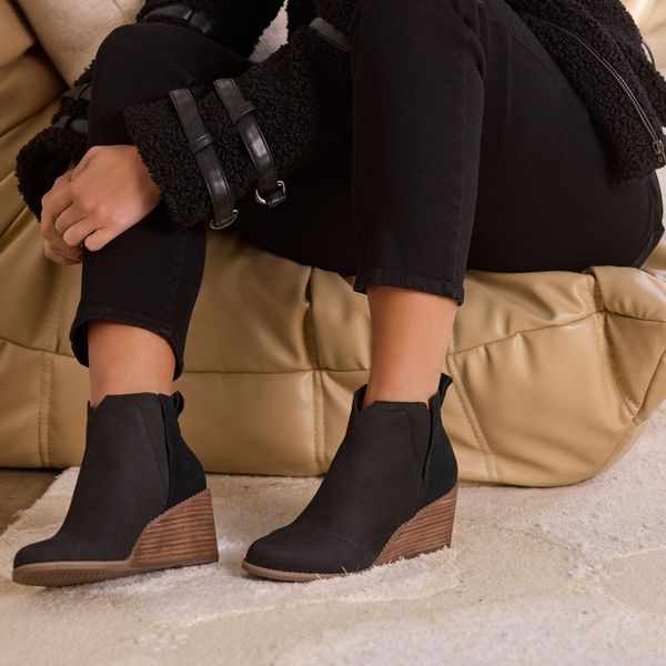 The Clare ankle boot is an outfit-making style you’ll love to wear on repeat. Featuring an extra-comfortable wedge heel, pull-on tab, and stretch side panels for easy removal—these boots not only feel (and look) good but also do a whole lot of good. Suede and leather uppers. TOMS leather products support responsible manufacturing via the Leather Working Group.