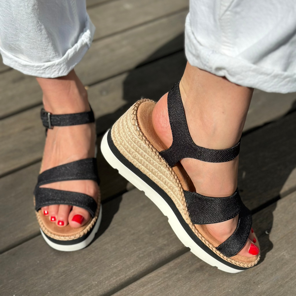 The platform wedge sandal you can live in. Darya marries a high and stylish rope-wrapped wedge with wide straps, lightweight construction and cushy CloudBound™ insoles for all-day comfort. Complete the look with dresses or denim. Heavy canvas textile upper with artisanal stitch detailing.