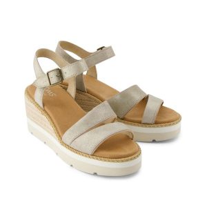 The platform wedge sandal you can live in. Darya marries a high and stylish rope-wrapped wedge with wide straps, lightweight construction and cushy CloudBound™ insoles for all-day comfort. Complete the look with dresses or denim. Metallic suede textile upper with artisanal stitch detailing. TOMS leather products support responsible manufacturing via the Leather Working Group.