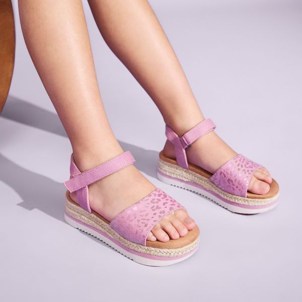 An espadrille sandal for your mini! The Diana is packed with cute and comfy details like a chic toe strap and secure ankle strap, plus lightweight, rope-wrapped midsole. They’re the perfect warm-weather pair to style with all their favorite looks.Textile upper with iridescent leopard print.