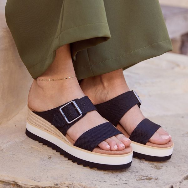 Our best-selling wedge sandal in a strappy mule silhouette. The mid-height Diana platform mule features two thick straps, a textured rope wrap detail and a chic metal buckle for a custom fit and added style. Pair with all your warm-weather looks. Heavy canvas upper.