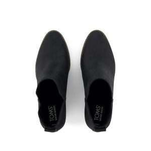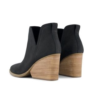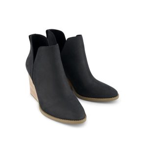 Casual elegance; lasting comfort. Meet the Eliza, a black Nubuck leather bootie with a sculpted wedge heel and bold cutouts for a touch of edge. Pull tabs and CloudBound™ insoles make them easy to get on and ultra comfortable.Nubuck uppers. TOMS leather products support responsible manufacturing via the Leather Working Group.