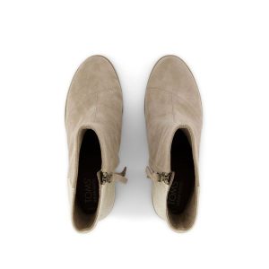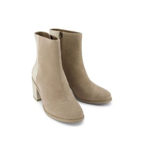 Make a statement and an impact in the Evelyn. This trendy ankle boot instantly elevates your look with a stacked heel and color-blocked uppers in beige and metallic suede. Fitted with CloudBound™ insoles for lasting comfort and support.Suede uppers. TOMS leather products support responsible manufacturing via the Leather Working Group.