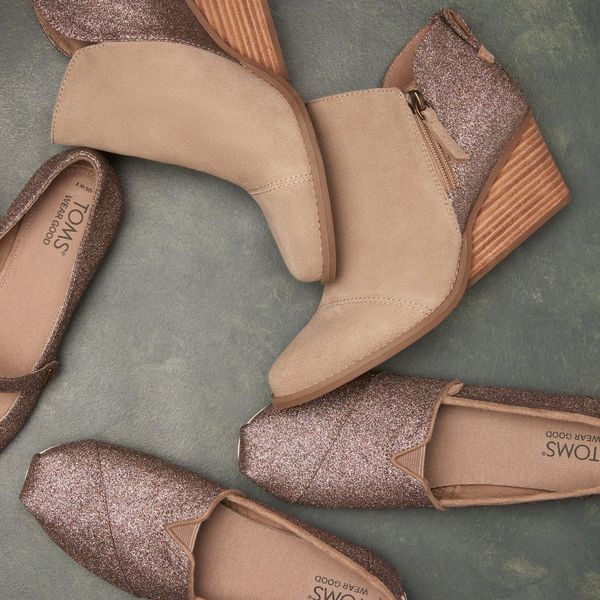 Simple yet stunning, the Goldie ankle boot has gold metallic uppers offset with glittery metallic leather and a two-inch wedge heel for the perfect amount of lift. A side zipper, pull tab and CloudBound™ insoles ensure an easy, comfortable fit.Leather uppers. TOMS leather products support responsible manufacturing via the Leather Working Group.
