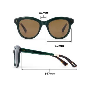 Bold and built to last, the Gwyneth is handcrafted with an oversized cat-eye design that’s both lightweight and timeless. Its green hue adds a fun pop of color, paired with brown lenses to keep UVA and UVB rays at bay.Handcrafted acetate frames.