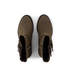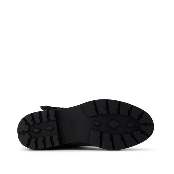 The Ionie boot is both edgy and stylish with canteen-green Nubuck leather uppers and a moto-inspired silhouette. Buckle straps with sleek hardware and a medial zipper ensure easy entry. Fitted with cushy insoles for lasting support.Nubuck leather uppers. TOMS leather products support responsible manufacturing via the Leather Working Group.