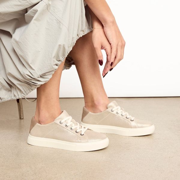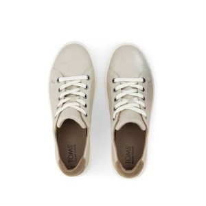 Kameron: a shiny new shoe. This lace-up sneaker packs comfort and style into a sporty silhouette. Metallic suede uppers add sophistication, while comfy CloudBoundâ„¢ insoles support each step. Dress up with a skirt or down in denim.Metallic suede uppers. TOMS leather products support responsible manufacturing via the Leather Working Group.