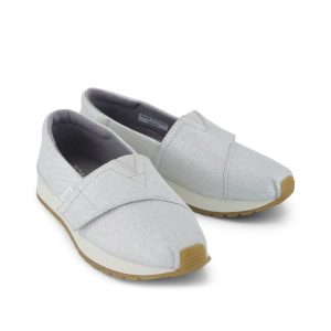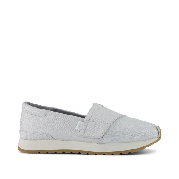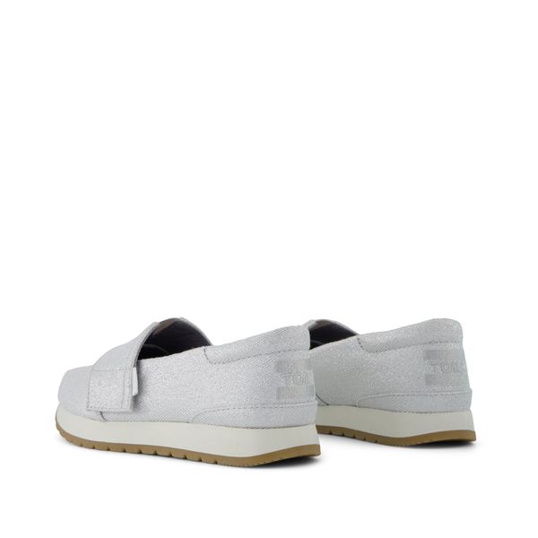 Silver Metallic Twill, 10022773TOMS run true to size and are available in medium width only. We recommend ordering the size you normally wear. If you are typically in between sizes, we recommend going with the smaller one since TOMS will stretch slightly as you break them in.