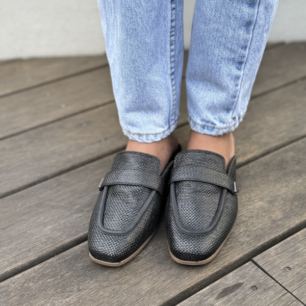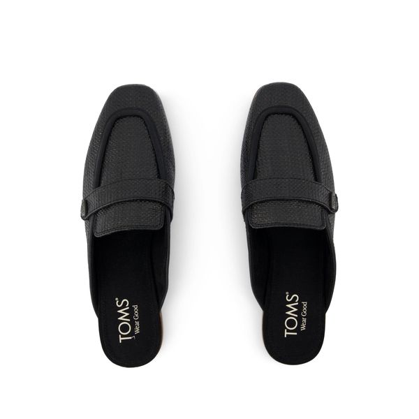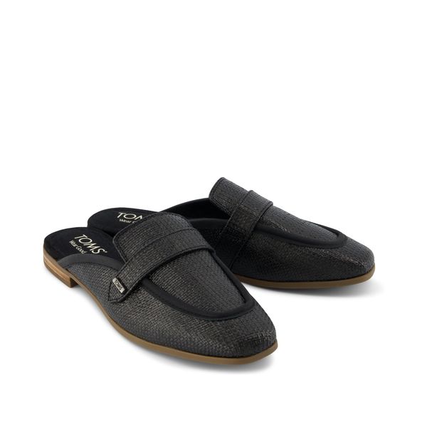 The versatile loafer-style mule every closet needs. Sleek and low-profile raffia and leather uppers with a slightly squared toe and shiny, TOMS-embossed hardware define the Lynette Mule dress shoe. Style them for the office or every day. Raffia and leather upper. TOMS leather products support responsible manufacturing via the Leather Working Group.