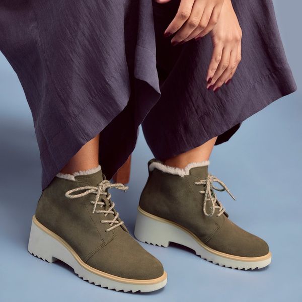 Maude Lace Up Olive Suede Faux Fur Wedge Boot – HydroJugs | Next Level Hydration