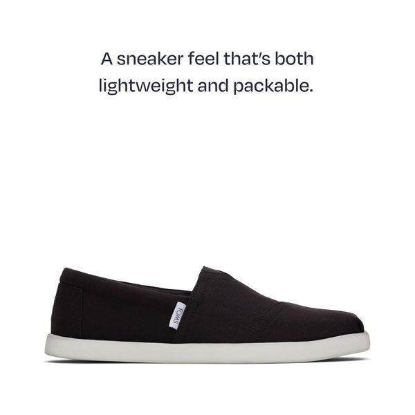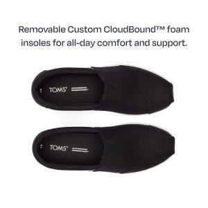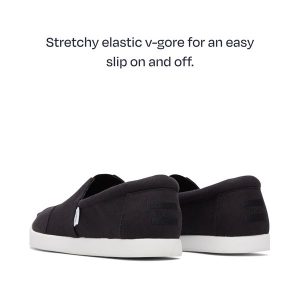 Black Recycled Cotton Canvas, 10019864TOMS run true to size and are available in medium width only. We recommend ordering the size you normally wear. If you are typically in between sizes, we recommend going with the smaller one since TOMS will stretch slightly as you break them in.