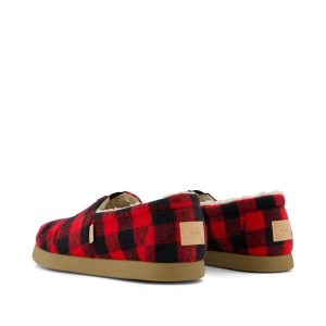Buffalo Plaid Red Faux Shearling, 10022931TOMS run true to size and are available in medium width only. We recommend ordering the size you normally wear. If you are typically in between sizes, we recommend going with the smaller one since TOMS will stretch slightly as you break them in.