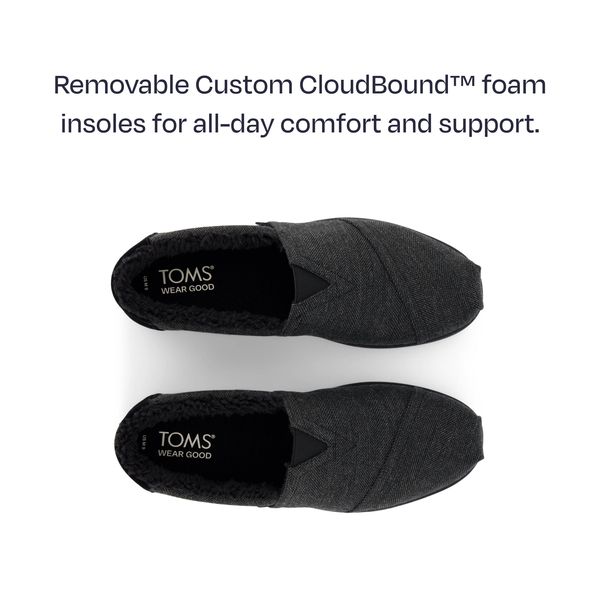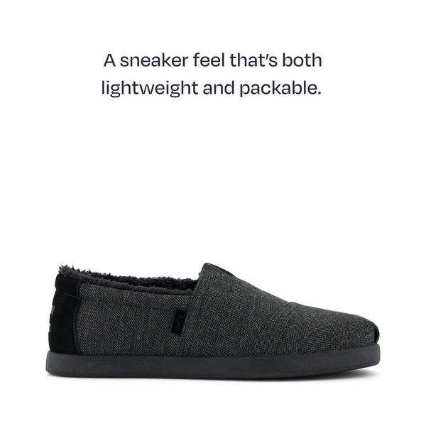 Impactful Alpargata slip-ons with signature TOMS style, now in charcoal with textural herringbone uppers. Casual and easygoing, they pair well with jeans, tees and everything in between. Finished with cushy CloudBoundâ„¢ insoles for all-day comfort.Herringbone uppers.