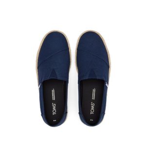 Navy Recycled Cotton, 10019870TOMS run true to size and are available in medium width only. We recommend ordering the size you normally wear. If you are typically in between sizes, we recommend going with the smaller one since TOMS will stretch slightly as you break them in.