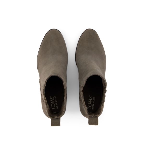 Rise above in the vintage-inspired Noa ankle boot. A sculpted leather-wrapped wedge gives this Chelsea boot the perfect amount of lift, offset by versatile olive suede uppers. CloudBoundâ„¢ insoles provide support and feel as light and comfy as a cloud so you can float through your day with ease. Suede uppers. TOMS leather products support responsible manufacturing via the Leather Working Group.