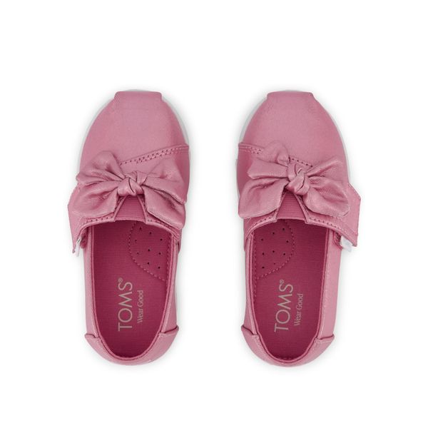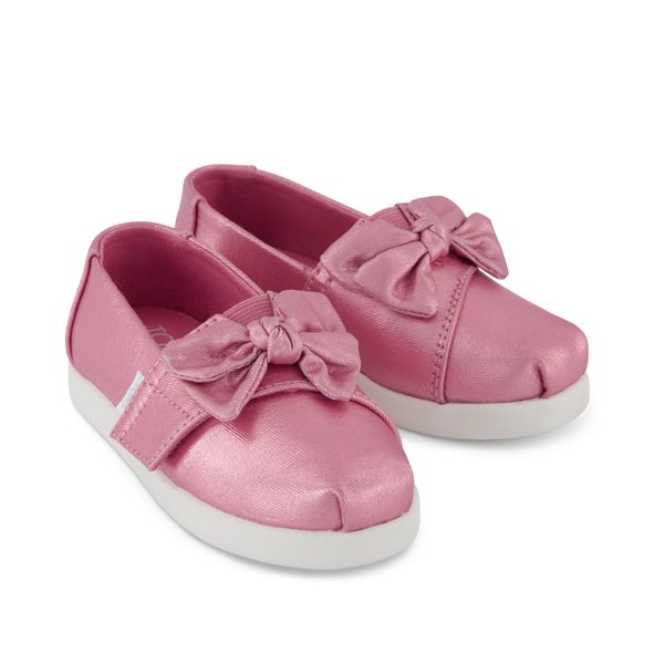 Rose Pink Metallic Twill with Bow, 10022739TOMS run true to size and are available in medium width only. We recommend ordering the size you normally wear. If you are typically in between sizes, we recommend going with the smaller one since TOMS will stretch slightly as you break them in.