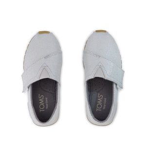 Silver Metallic Twill, 10022777TOMS run true to size and are available in medium width only. We recommend ordering the size you normally wear. If you are typically in between sizes, we recommend going with the smaller one since TOMS will stretch slightly as you break them in.