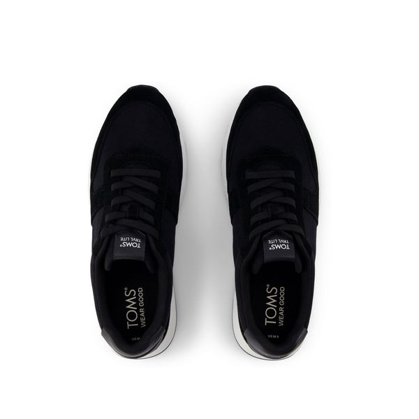 Bring retro, throwback style to all of your casual outfits. This sneaker balances style and support with black twill and suede uppers, CloudBound™ insoles and TRVL LITE technology. Matching laces make for a thoughtful finishing touch.Textile and suede uppers. TOMS leather products support responsible manufacturing via the Leather Working Group.