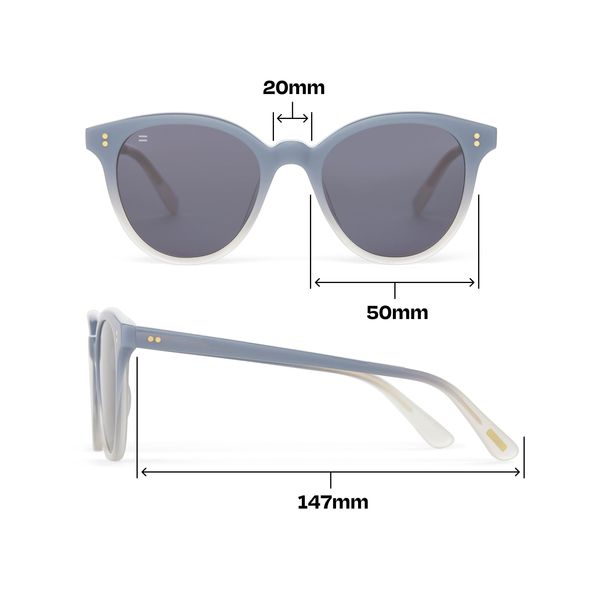 Don’t miss out on sunny days. Brave the sun with our Aaryn UVA & UVB-protected frames. Made with a blue grey gradient fade finish to bring you all the style.Frame dimensions: 50-20-147 MM