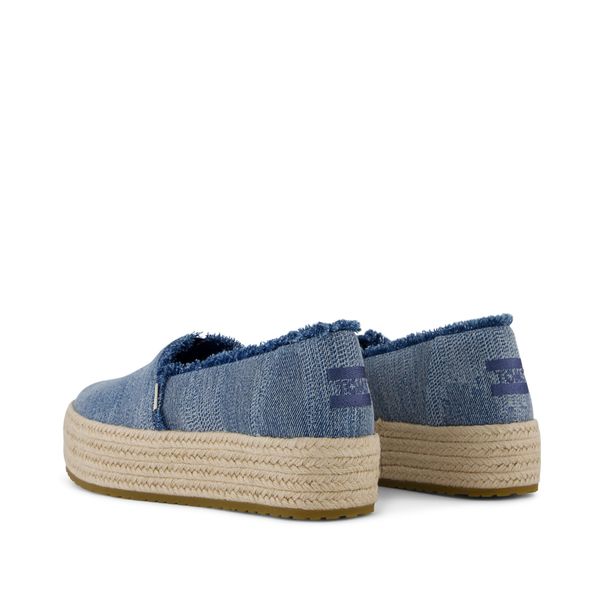 Espadrilles, up a notch. The Valencia platform slip-on shoe stands tall on a rope-wrapped platform with frayed textured denim uppers for a laidback look. Cushy CloudBoundâ„¢ insoles provide support, breathability and comfort on the go.Textured denim upper with fray detailing.