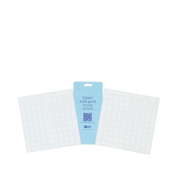 Add fun flair to your favorite pair of TOMS with our new shoe tattoos, featuring letters you can arrange to spell a name or short mantra. You can also stick them to a notebook or phone case—your options are endless.Temporary decorative tattoos.