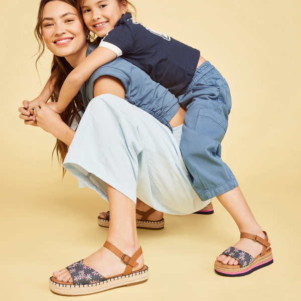 Meet our most walkable espadrille yet! Abby embroidered sandals feature that just-right everyday flatform height, playful embroidered flowers, and a minimalist silhouette secured with an ankle strap. Abby delivers effortless style for everything on your agenda.Textile and leather upper with embroidered floral detailing. TOMS leather products support responsible manufacturing via the Leather Working Group.