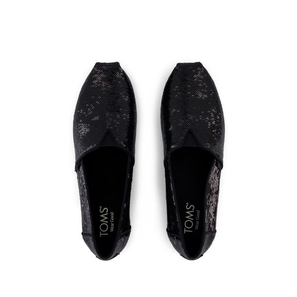 Black Metallic Sequins, 10022614TOMS run true to size and are available in medium width only. We recommend ordering the size you normally wear. If you are typically in between sizes, we recommend going with the smaller one since TOMS will stretch slightly as you break them in.