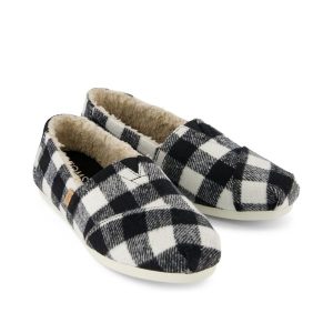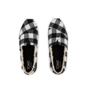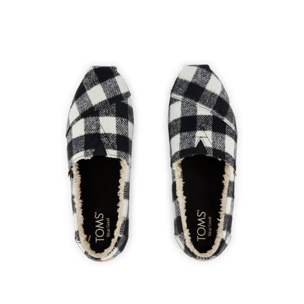 Buffalo Plaid Black Faux Shearling, 10022933TOMS run true to size and are available in medium width only. We recommend ordering the size you normally wear. If you are typically in between sizes, we recommend going with the smaller one since TOMS will stretch slightly as you break them in.