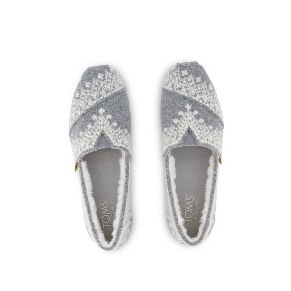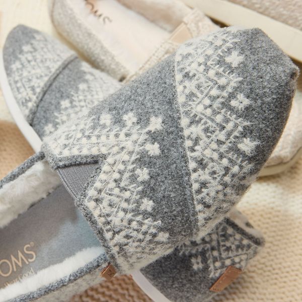 Our cabin-ready Alpargata Classic: A TOMS original closet staple. These slip-on shoes balance style and function seamlessly with marled felt uppers and festive embroidery for added texture and depth, plus faux fur linings for the ultimate coziness. CloudBound™ insoles provide superior comfort and support.Marled felt upper with Fair Isle embroidery.