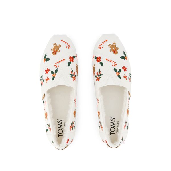 Natural Gingerbread Candy Cane Embroidery, 10022996TOMS run true to size and are available in medium width only. We recommend ordering the size you normally wear. If you are typically in between sizes, we recommend going with the smaller one since TOMS will stretch slightly as you break them in.