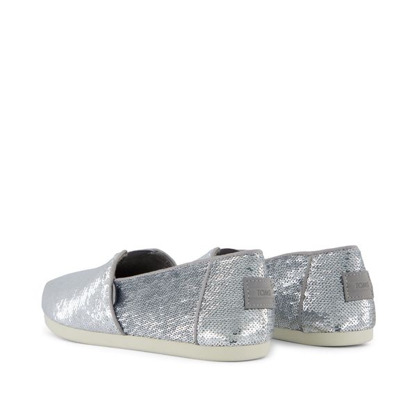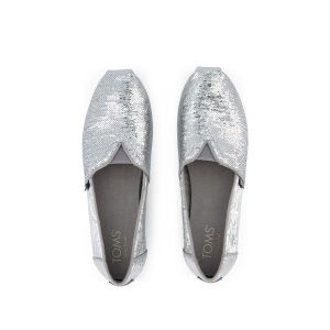 Silver Metallic Sequins, 10022607TOMS run true to size and are available in medium width only. We recommend ordering the size you normally wear. If you are typically in between sizes, we recommend going with the smaller one since TOMS will stretch slightly as you break them in.