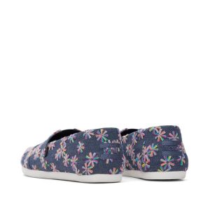 Embroidered Floral Navy, 10020650TOMS run true to size and are available in medium width only. We recommend ordering the size you normally wear. If you are typically in between sizes, we recommend going with the smaller one since TOMS will stretch slightly as you break them in.