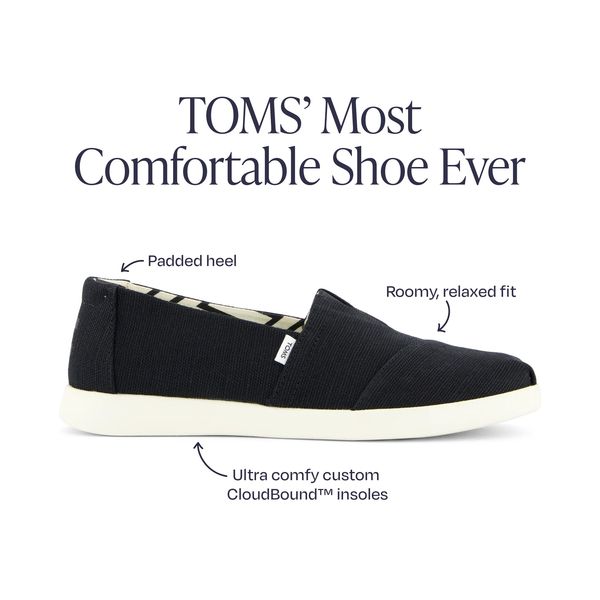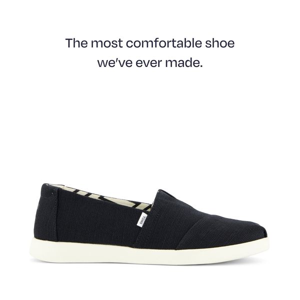 The Alpargata Plus—the most comfortable shoe we’ve ever made, featuring a roomy fit, sleek black uppers and custom CloudBoundâ„¢ insoles that feel light and airy on your feet. See the world in the shoe designed to leave an impact.Heritage Canvas upper made primarily with jute—a preferred eco-fiber that requires less water and fewer chemicals to grow.